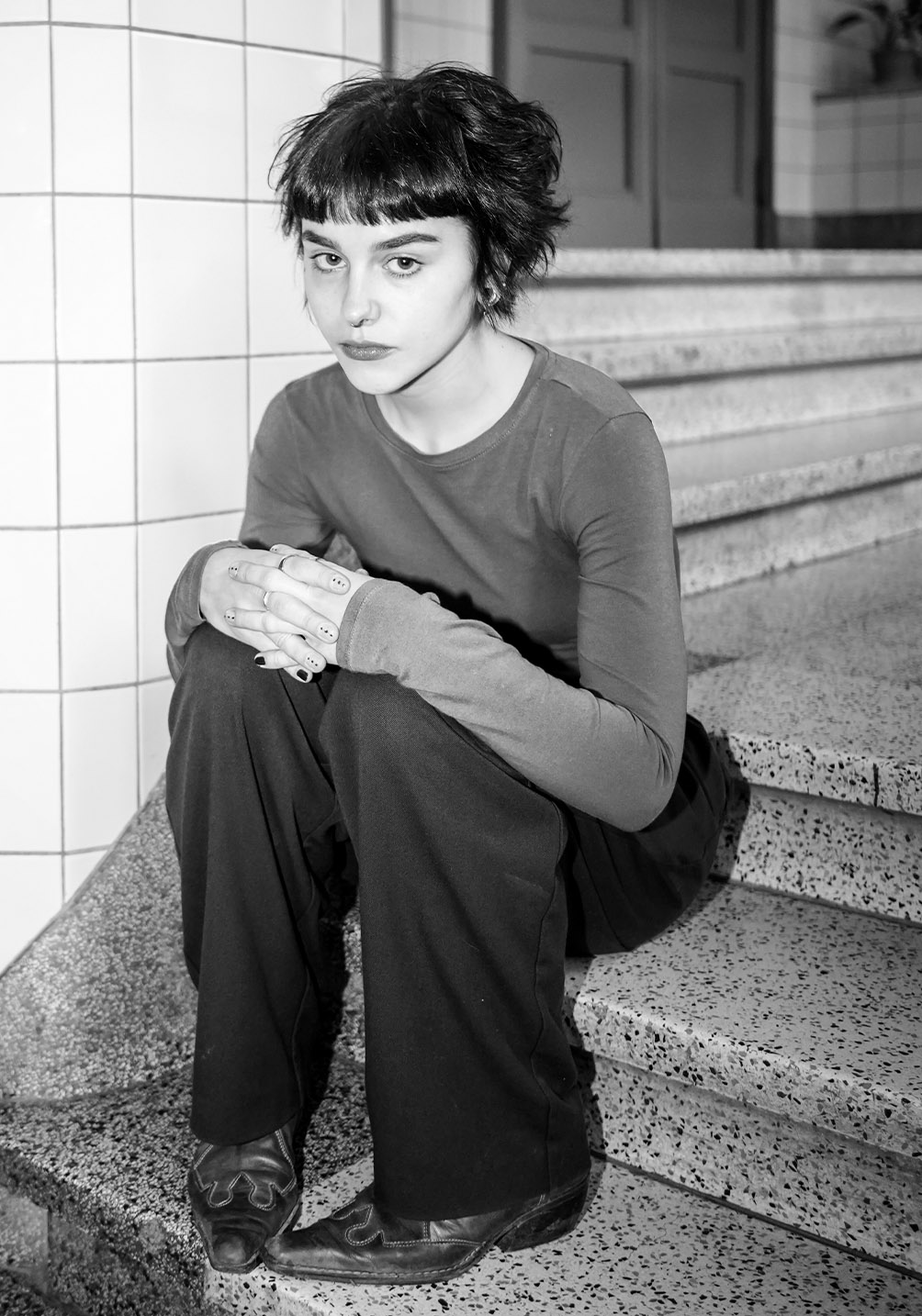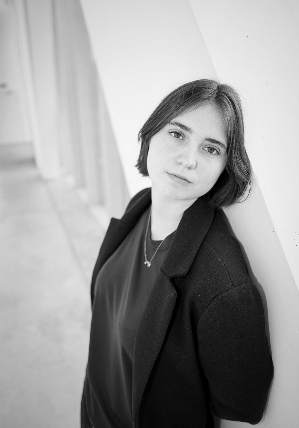 Hanna Mensink (die/zij, °1999) is schrijver, theatermaker en audio-kunstenaar. Ze studeerde woordkunst (writing, media and performance) aan het Koninklijk Conservatorium in Antwerpen. Ze speelde mee in verschillende televisiereeksen, waaronder WTFock, Liefdestips aan mezelf en 2DEZIT, en werd in haar eerste jaar Woordkunst geselecteerd voor de DasMag Zomerresidentie. Hanna’s werk beweegt zich op het snijvlak van taal, klank en lichamelijkheid. Ze zoekt naar een manier om het ongrijpbare tastbaar te maken—het sluimerende, het stof onder de deurmat, het onzegbare dat buiten het menselijke trilt. Haar teksten vonden hun weg naar verschillende podia, zoals 30CC in Leuven. Dit jaar gaat ze ook als stagiair aan de slag bij het theatercollectief Wolf Wolf. In haar werk vertrekt ze vanuit zintuiglijke ervaringen, als een manier om nieuwe landschappen en werelden op te roepen. Ze onderzoekt hoe lichaam, klank en woord elkaar kunnen aanvullen, zich in elkaar kunnen verstrengelen en samen een web van betekenissen kunnen vormen. Dit doet ze via verschillende media: schrijven, audiokunst en theater, die in haar werk vaak in dialoog met elkaar staan. Met een combinatie van gloednieuwe en oeroude verbeelding nodigt ze haar publiek uit om mee te dwalen in deze tussenruimtes.